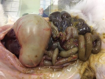 Once the obstruction is identified, it is carefully milked along the intestine and into the caecum. From here, the intestinal diameter is far greater, and obstructions can be passed through the large intestine without further issues.