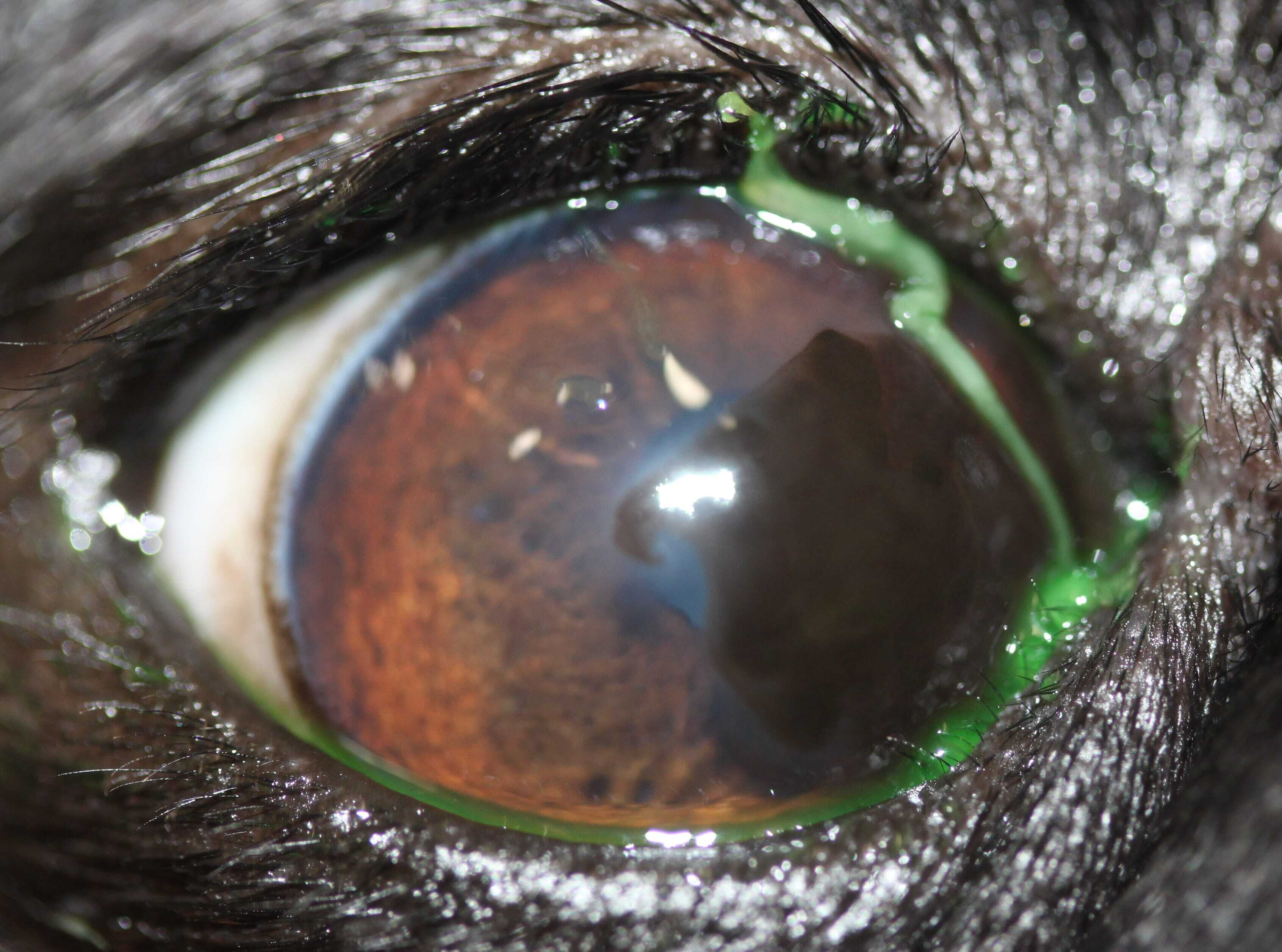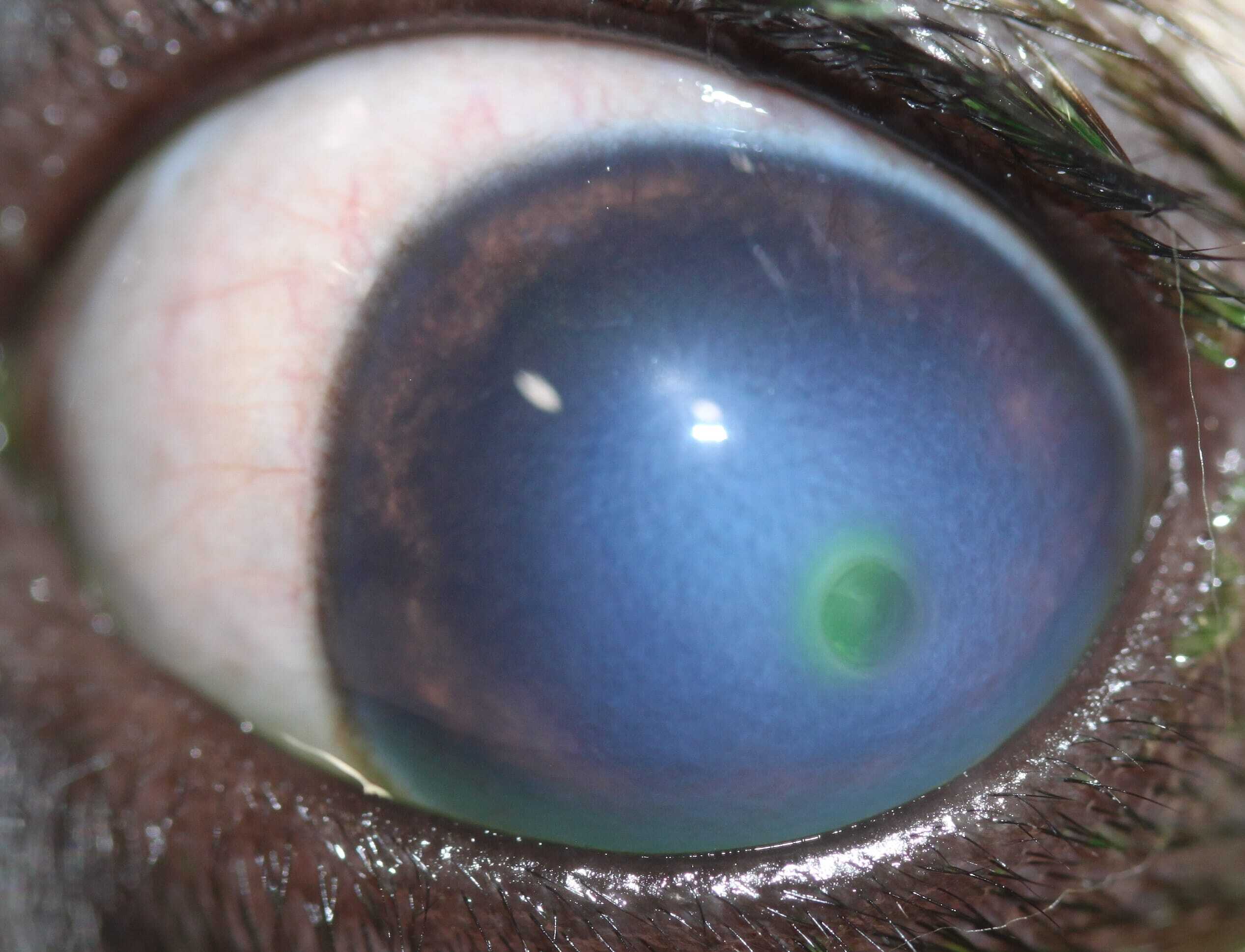 3 | Observe the fluorescein covering the entire corneal surface |