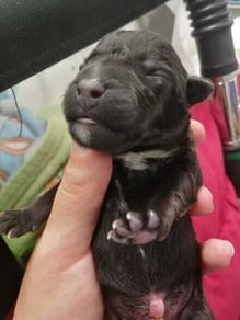 Once the puppies have been removed, they will need to be revived with resuscitation. The remaining residues of the foetal membrane should be removed and the airway checked to ensure it is clear from fluid. If necessary, fluid can be removed using suction. Swinging puppies to remove fluid is contraindicated due to the risk of cerebral haemorrhage. A clean and warm towel should be used to rub the puppy to stimulate respiration. The umbilical cord will need to be clamped and ligated. Once the puppies are breathing regularly and efficiently by themselves, they should be placed into a warm incubator while waiting for the bitch to recover from general anaesthesia. Perineal massage can be done to stimulate urination and defecation if required, although this is generally only needed if the puppies are being bottle fed (Reichler, 2010).