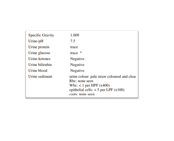 Sediment analysis | Crystalluria, bacteriuria, pyuria and haematuria | |