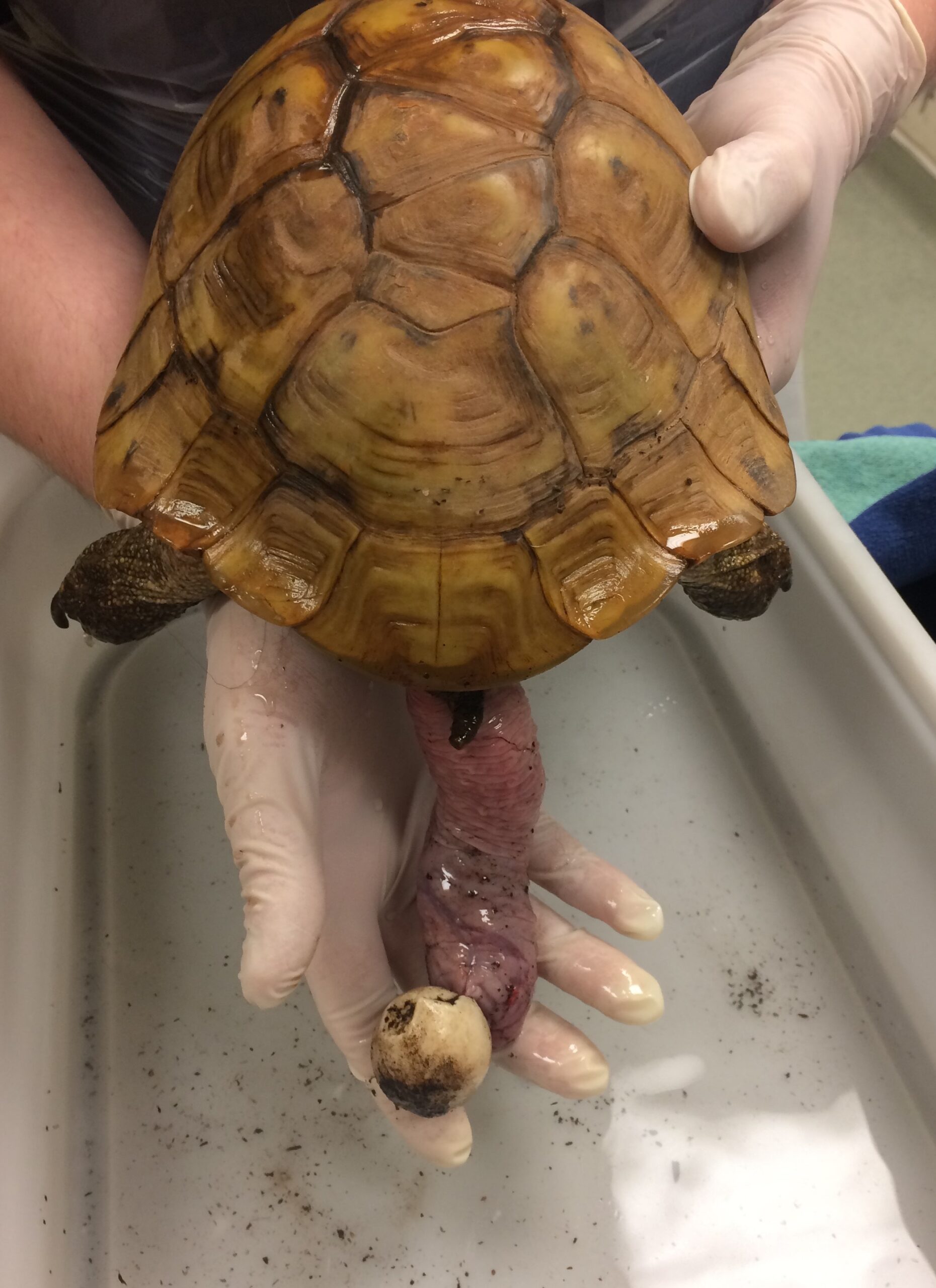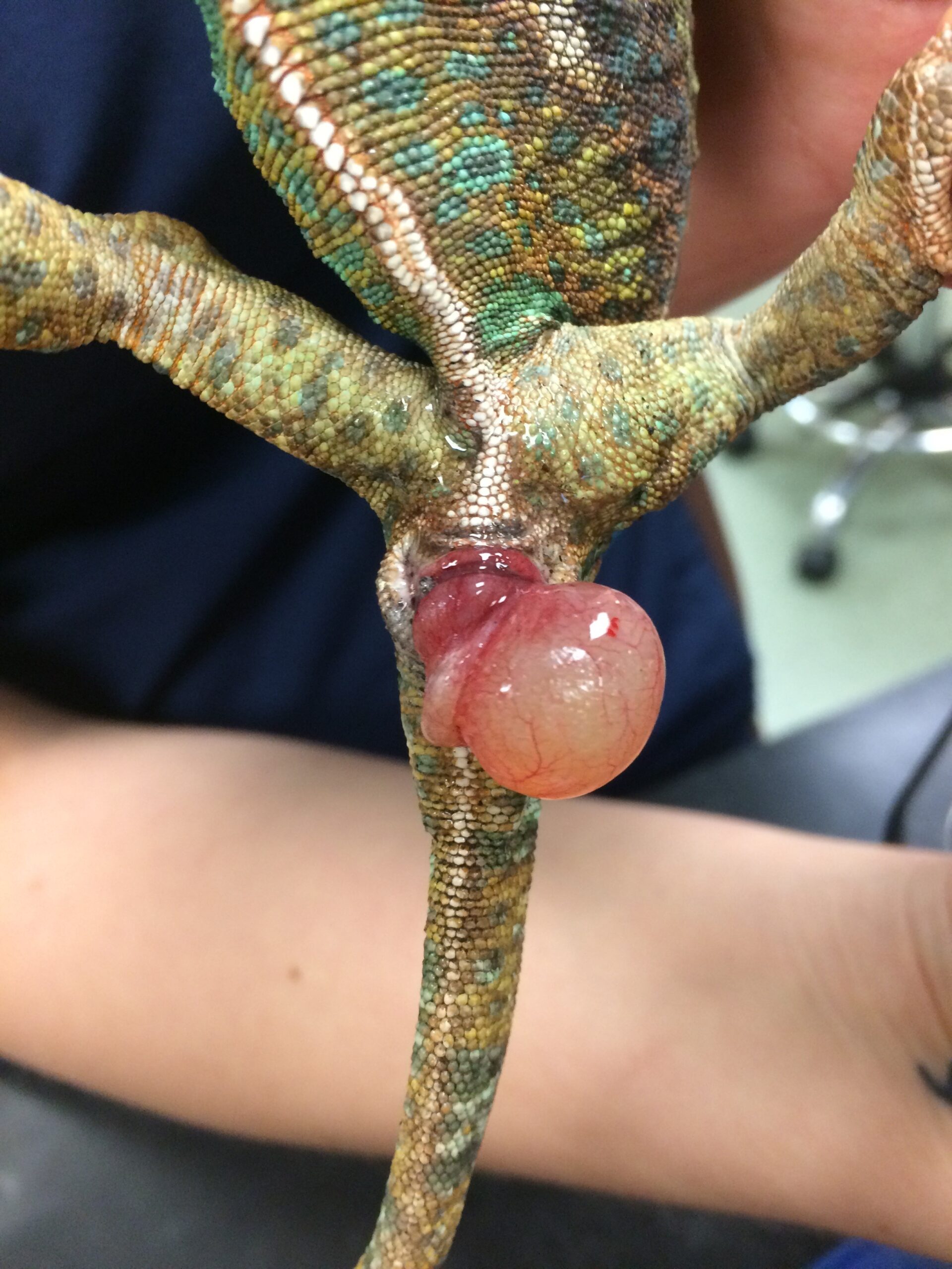 Identification of the prolapsed tissue can be difficult; however, assessing for the presence of a lumen can help to differentiate colon or oviduct from hemipene, phallus, bladder or a prolapsed mass