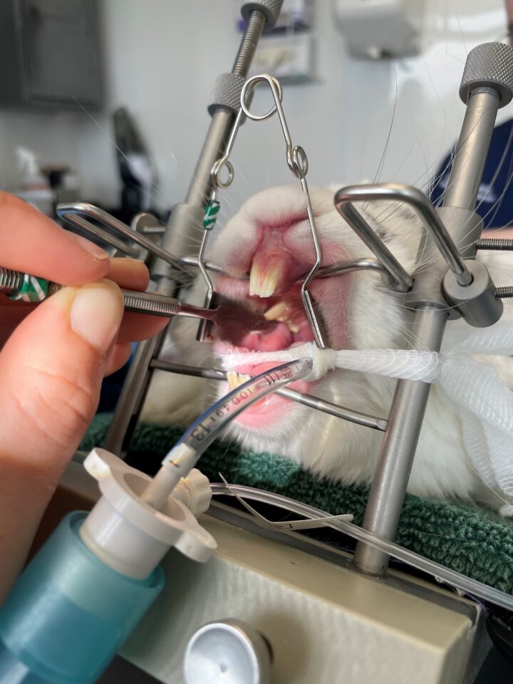The author’s preference is to perform dental examinations under full general anaesthesia as it allows for dental treatment to be carried out at the same time (Figure 1).