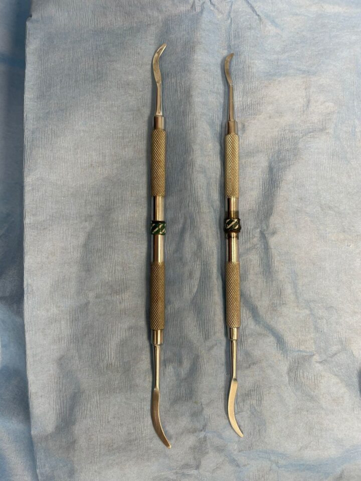 Specific instruments for rabbit and small herbivorous mammal tooth extractions have been designed by a veterinarian, Dr David Crossley. The Crossley incisor luxators and Crossley molar luxators are designed to be used within the confines of a small mammal mouth and for the anatomical characteristics of the teeth of these species (Capello, 2006) (Figure 5). In rodents and herbivorous mammals that are smaller than rabbits, hypodermic needles can be used to extract incisor teeth.