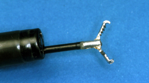 There are also many specialised instruments, such as magnetic probes for ferrous objects and “peanut forceps”, used for the endoscopic removal of the most common inhaled FB in people. However, a pair of rat‑tooth and basket forceps, and possibly a snare and a Roth net, should cover most eventualities. Challenging FBs, however, may require improvisation. For example, bronchoscopes often have a narrow working channel down which no grasping instrument will fit; however, it may be possible to retrieve inhaled FBs by taping forceps to the outside of the endoscope tip.