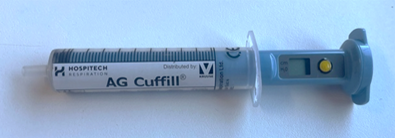 Cuff pressure can be measured using a manometer or a digital cuff inflator syringe (AG Cuffill; Figure 3) to inflate and measure the cuff pressure, which should be 20 to 30cmH2O (Hung et al., 2020). A different type of cuff inflation syringe (Tru-Cuff) contains a colour-coded pressure indicator.