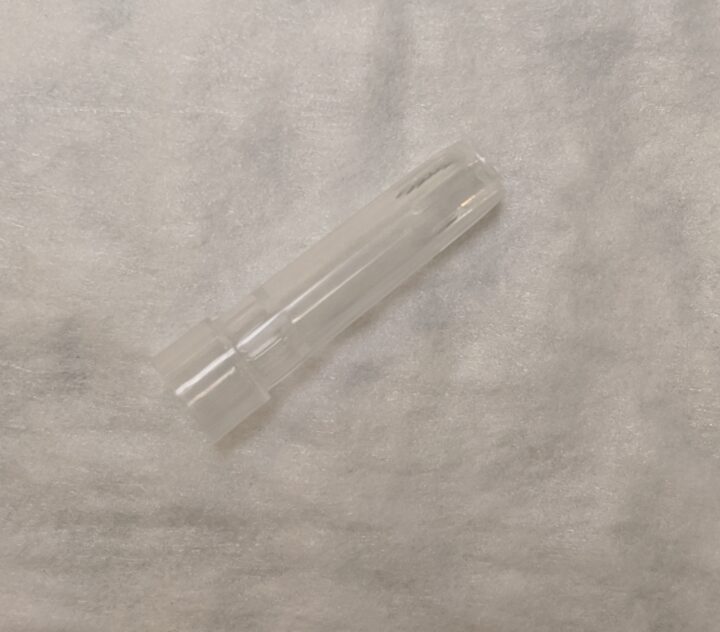 A mouth gag must be used throughout the procedure to prevent accidental damage to the endoscope caused by the patient biting down on the equipment should the patient’s anaesthetic depth become too light (Figure 3). A cut-down needle cap may be used for feline patients (Figure 4) to counter the risk of cerebral and retinal ischaemia and blindness from spring-loaded gags (Martin-Flores et al., 2014).