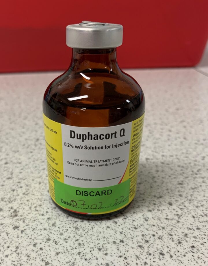 Intravenous steroids can be given to treat the deficiency in glucocorticoids. Administration often leads to a rapid improvement in the patient’s demeanour. If steroids are to be administered before completing the ACTH stimulation test, only dexamethasone (Figure 3) should be used, as all other steroids will impact the results of the test (Scott-Moncrieff, 2015).