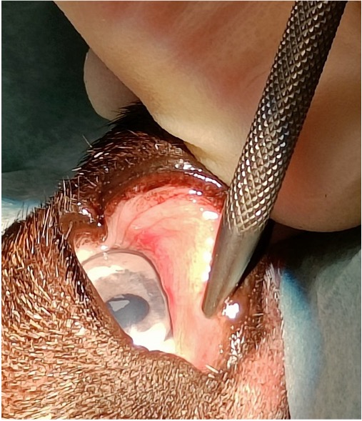 The post-operative period and recovery in dogs are usually short, as the eyelids are well vascularised, allowing for rapid healing