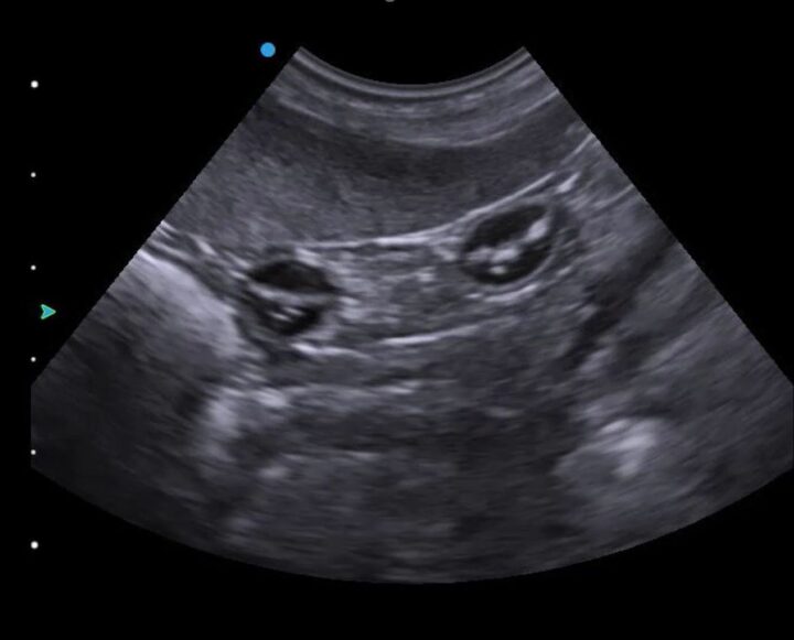 Early pregnancies tend to be located very close to the bladder, making it an excellent starting point for every scan. The movements required to locate gestation sacs around the 30-day mark are small; you rarely need to move the footprint of the probe along the skin to locate gestation sacs, as they can be found by tilting the probe – imagine it as a searchlight.