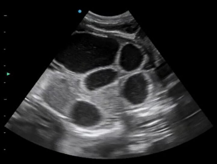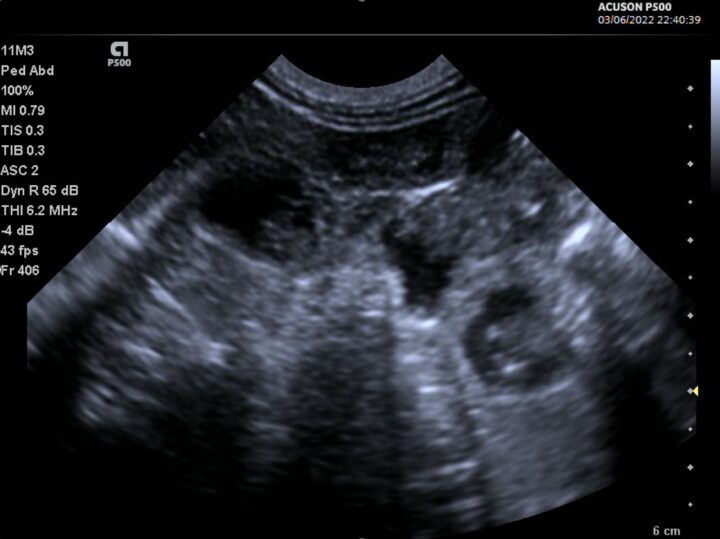 More advanced users may begin to spot foetal abnormalities, such as hydrocephalus, foetal anasarca or bowel obstructions, due to the ease at which ultrasound can image fluid (Figure 4). This is a clear advantage of the veterinarian performing scans in-house over the lay scanner, who would need to refer such findings.