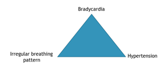 The triad known as the Cushing’s reflex includes increased blood pressure, bradycardia and irregular breathing (Figure 3) and often indicates herniation or severe haemorrhage. If a patient with a suspected TBI is showing any signs of the Cushing’s reflex triad, then treatment must be initiated immediately, though morbidity factors are significantly increased.
