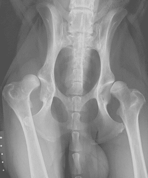 Surgical options available for hip dysplasia that modify the hip anatomy can be considered in young dogs. Juvenile pubic symphysiodesis has been described in dogs that are younger than 24 weeks (however, are most effective if performed between 15 and 18 weeks of age) and demonstrate hip laxity on orthopaedic examination and distraction radiography. This surgery has been associated with a reduced risk of developing hip osteoarthritis in puppies with increased hip laxity (Patricelli et al., 2002; Manley et al., 2007; Bernarde, 2010). Unfortunately, most puppies presenting with clinical signs of hip dysplasia are older than 20 weeks and the window of opportunity is therefore missed.