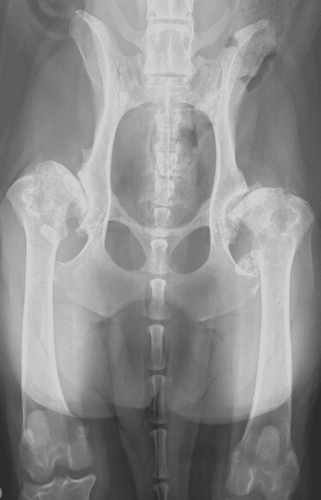 A second surgery to consider in young dogs is the double or triple pelvic osteotomy. These techniques can be considered in dogs from 6 to 10 months of age demonstrating mild hip instability (identified through the Ortolani test), clinical signs of hip dysplasia and no radiographic evidence of osteoarthritis (+/- arthroscopy if available).